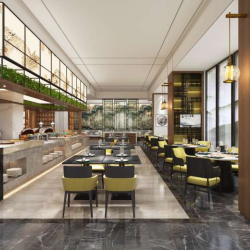 This 3D scene showcases a beautifully designed dining space featuring modern furniture including a dining table and chairs. The interior design is a blend of modern and contemporary styles, creating a visually appealing space for dining and socializing.