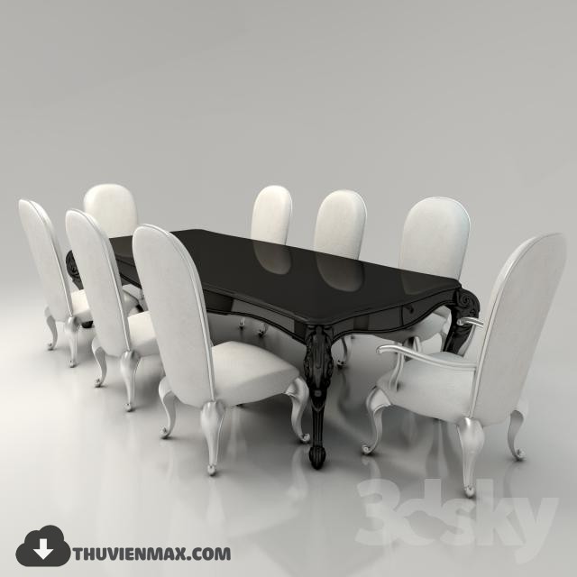 This 3D model preview showcases a dining table and chairs set from Belloni. The design is modern and elegant, suitable for various interior design styles. The high-quality rendering highlights the details of the furniture pieces, making it a great addition to your 3D furniture library. Download this model to enhance your interior design projects.