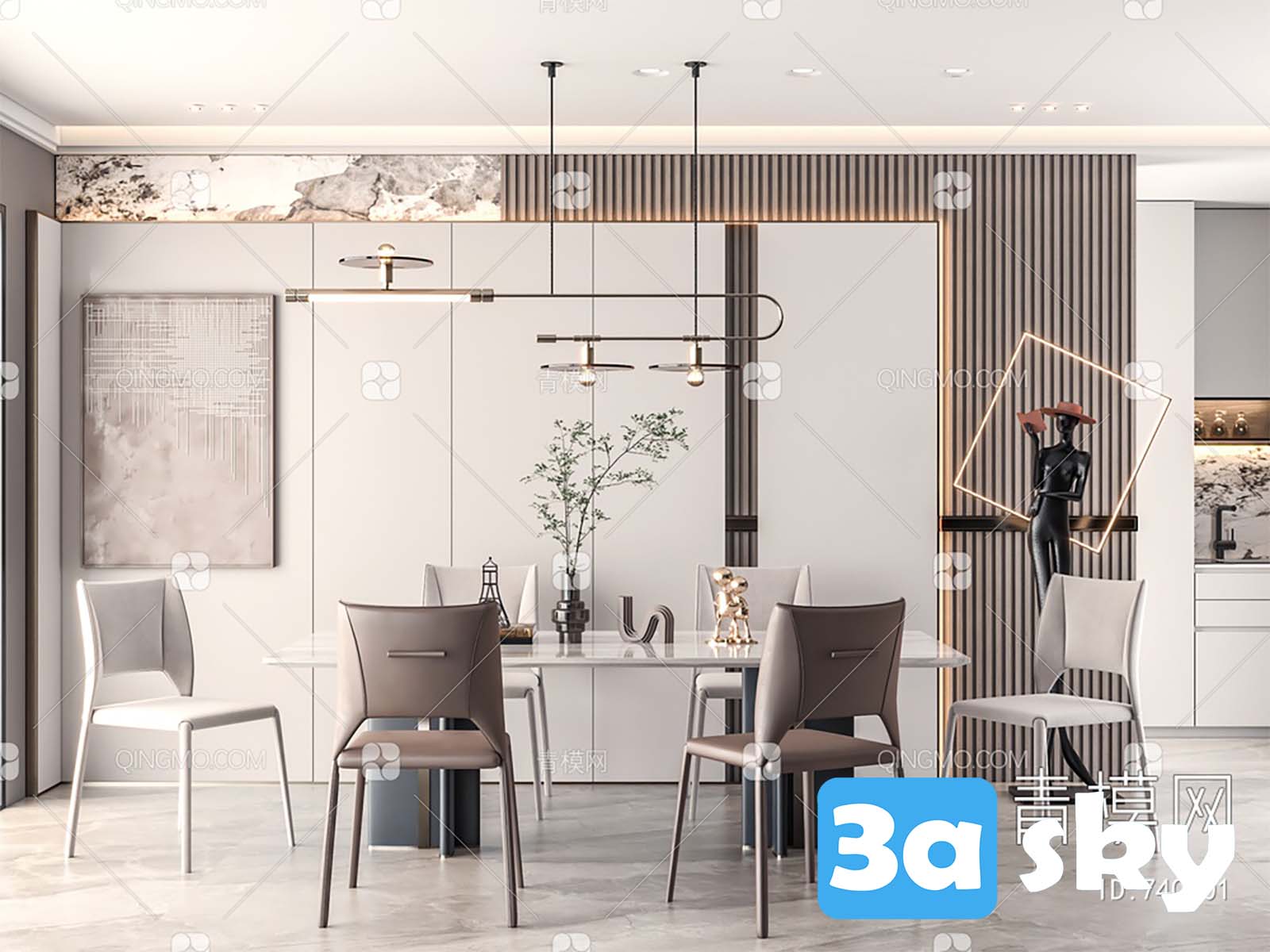 This 3D scene showcases a modern and stylish dinning room design. The room features elegant furniture, contemporary decor, and a well-thought-out layout. Explore the space to get inspiration for your own interior design projects.