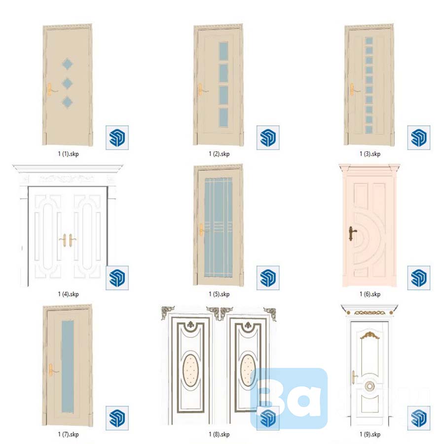 This Sketchup decoration file features a detailed Door 1022 design that can be used in interior design projects. The 3D model is high quality and suitable for various design applications.