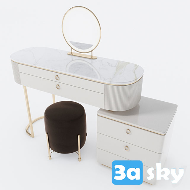 This 3D model showcases a modern dressing table, ideal for interior design and architectural projects. The detailed design and realistic textures make it a versatile asset for various visualization needs.