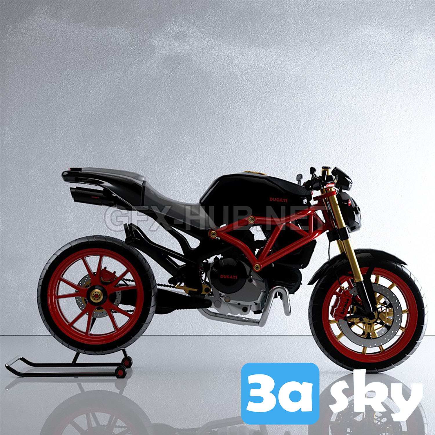This 3D model decoration features the Ducati Monster 896 design, created in 3DS MAX. It offers a detailed preview of the intricate details and design elements of this stunning decoration piece.