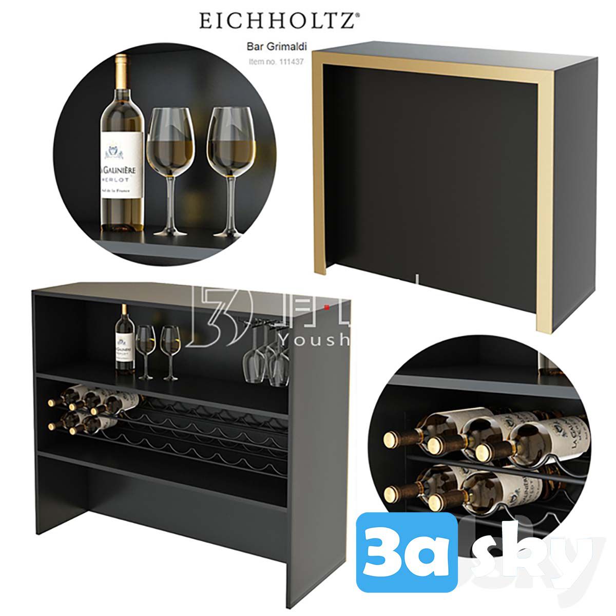 This 3D furniture model features the EICHHOLTZ Bar Grimaldi 111437 design. It is a stylish and modern piece suitable for various interior design styles. The model is created in 3DS MAX format and is ideal for architectural visualization and interior design projects.