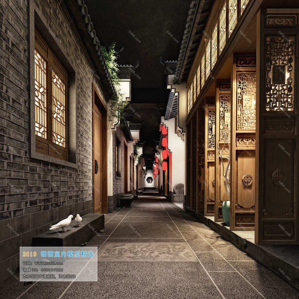 Elevator Lobby Chinese Style 3D Scene