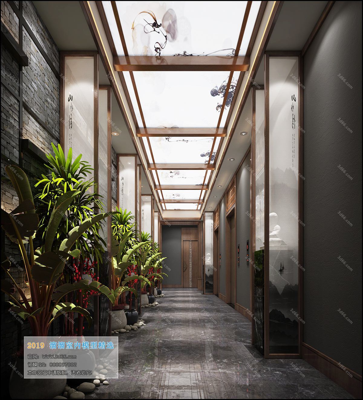 Elevator Lobby Chinese Style 3D Scene