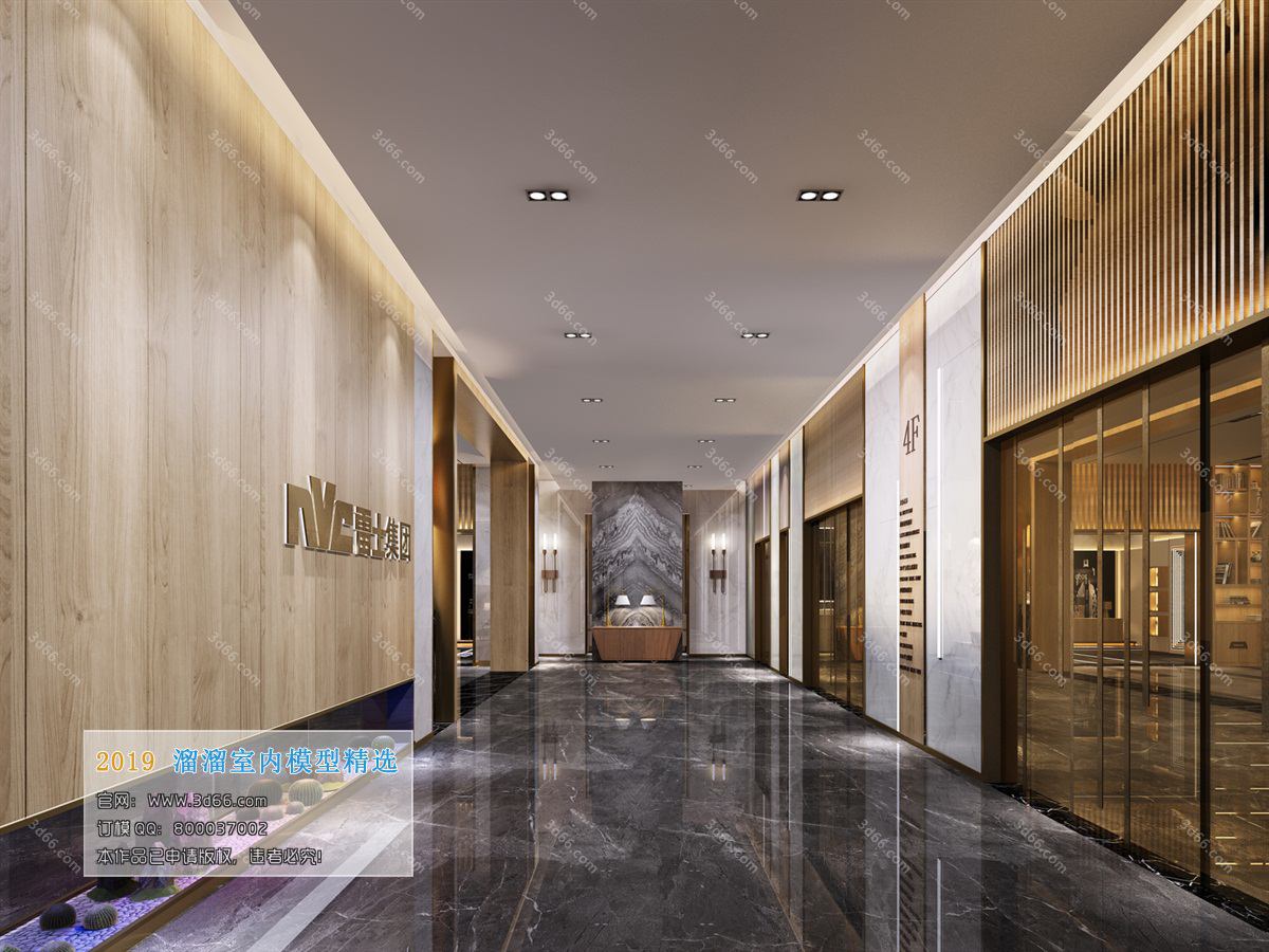 This 3D scene preview showcases a modern style elevator lobby, perfect for interior design projects. The contemporary design elements create a sleek and sophisticated atmosphere. Elevate your design concepts with this visually stunning visualization.