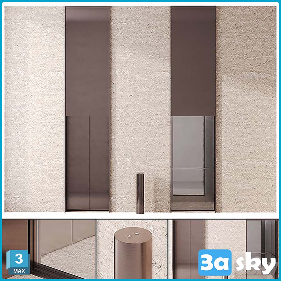 This 3D model preview showcases an elevator with bronze decoration, highlighting the luxurious and elegant design. The intricate details and craftsmanship of the bronze elements add a touch of sophistication to any interior space. Explore this stunning visualization to get inspiration for your own interior design projects.