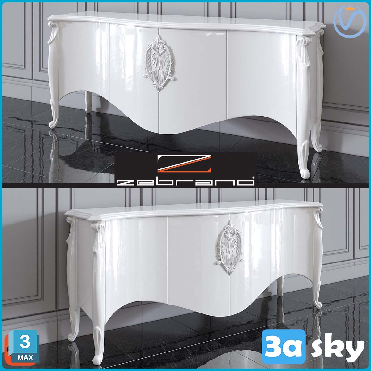 This 3D model showcases the Emily Console, a modern and stylish furniture piece. The preview provides a detailed look at the design and dimensions of the console, making it a great addition to any interior design project.