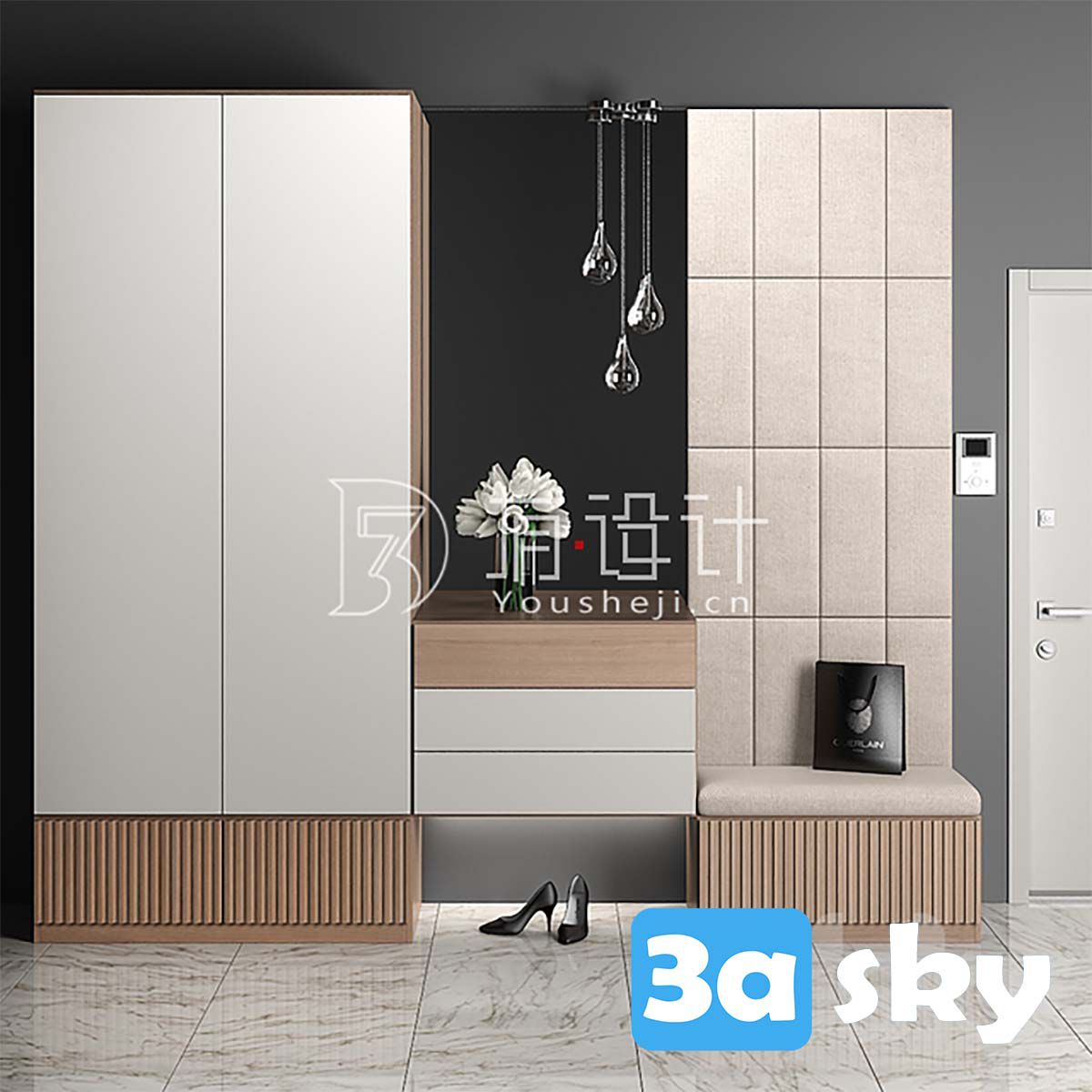 This 3D model showcases a beautifully designed entrance hall furniture set, suitable for interior design projects. The intricate details and realistic textures make it a perfect choice for architects, interior designers, and 3D enthusiasts. Enhance your design visualization with this stunning entrance hall furniture model.