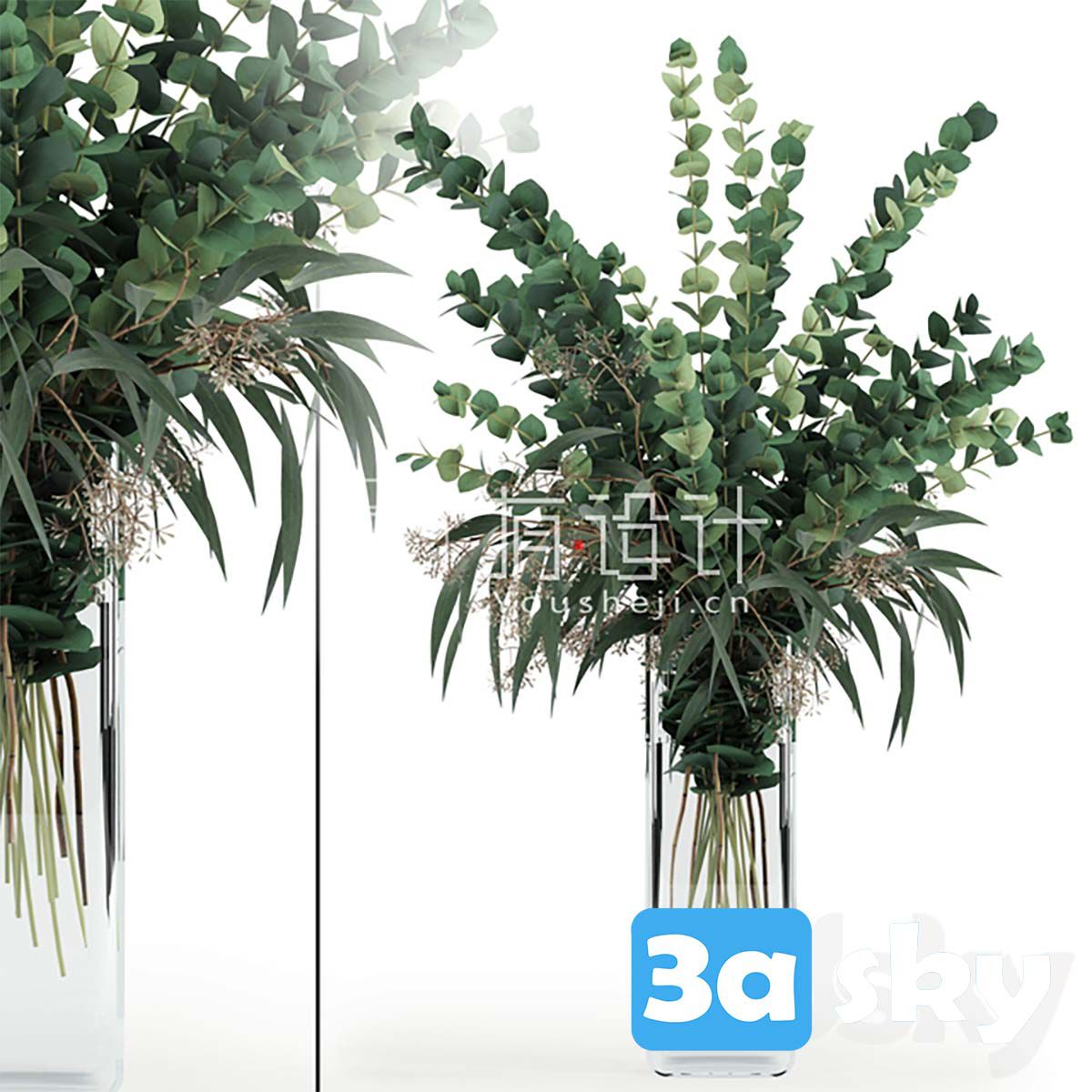 This 3D model features a realistic representation of Eucalyptus in a tall vase, suitable for use in architectural visualization, interior design projects, and more. Download this high-quality 3D plant model to enhance your creative projects.