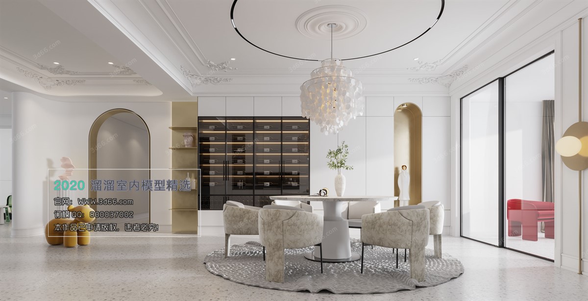 This image features a stunning dining room scene with European Corona design elements. The intricate details and elegant furniture create a luxurious and inviting atmosphere. Perfect for showcasing interior design concepts or architectural visualization projects. Download this 3D scene to elevate your design presentations.