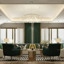 This 3D scene showcases a luxurious living room designed in European style. The room features elegant furniture, intricate decor, and a warm color palette. Perfect for those looking for inspiration in interior design.