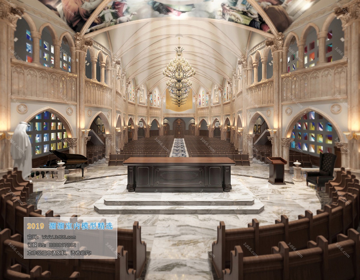 This 3D scene features a European style tooling public setting with detailed architecture and design elements. Explore the intricate details and craftsmanship in this visually appealing scene.