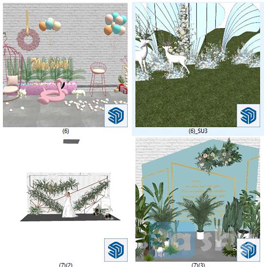 This 3D model features an event setup with modern design elements. It provides a detailed preview of the event layout and design, perfect for event planners and designers looking for inspiration.