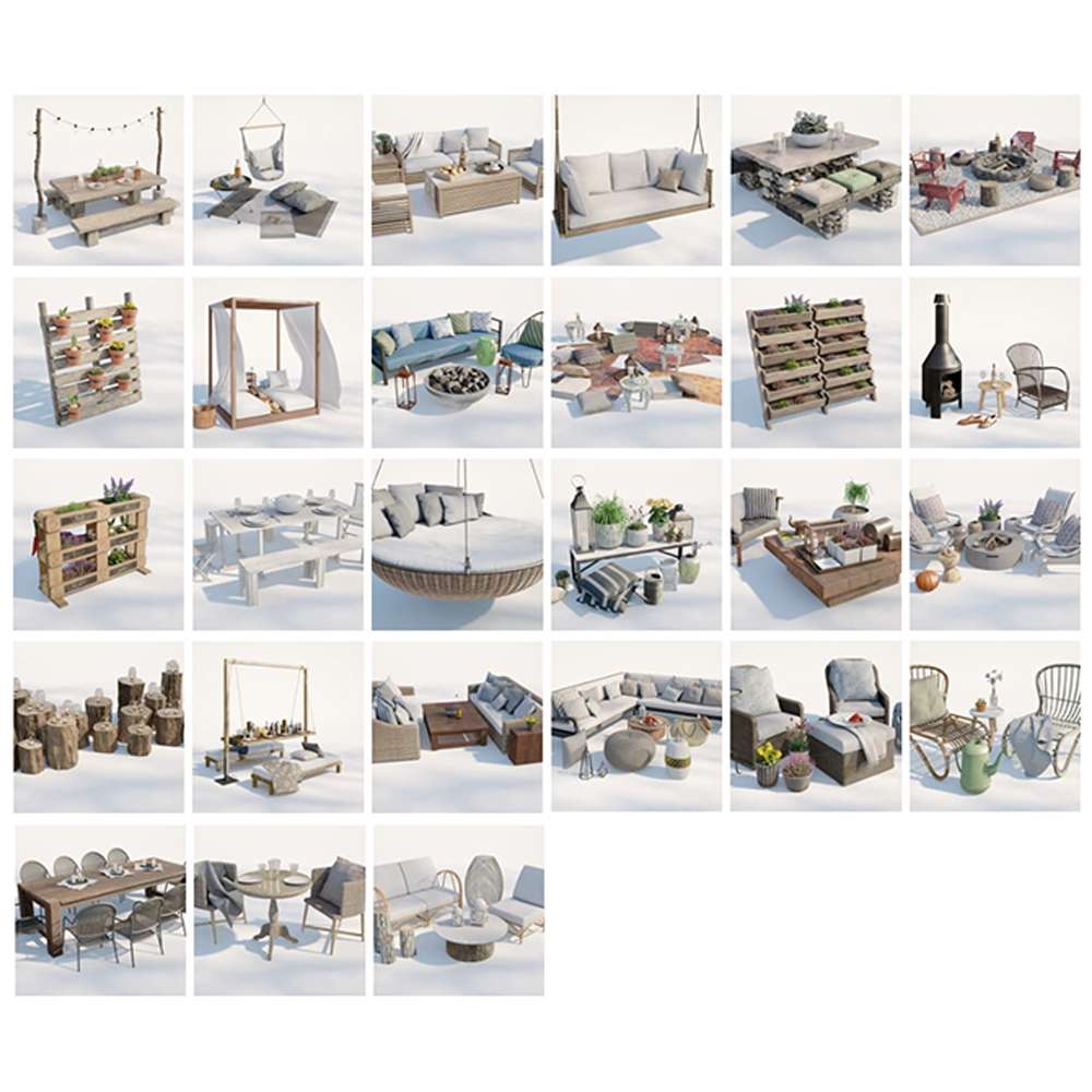 This is a preview image of Evermotion Archmodels 220, showcasing a collection of high-quality and detailed 3D models. The image provides a glimpse of the content included in this pack, offering a preview of the variety and quality of models available.