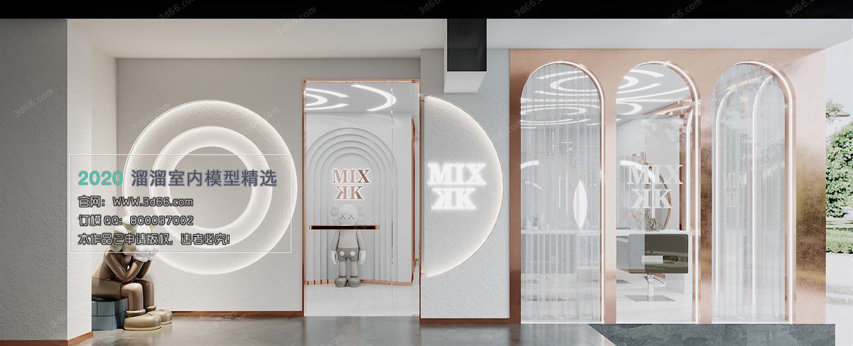This 3D scene showcases a modern exhibition couture design featuring a Corona model. The detailed preview provides a glimpse into the intricate details and design elements of the model, perfect for architectural visualization and design inspiration.