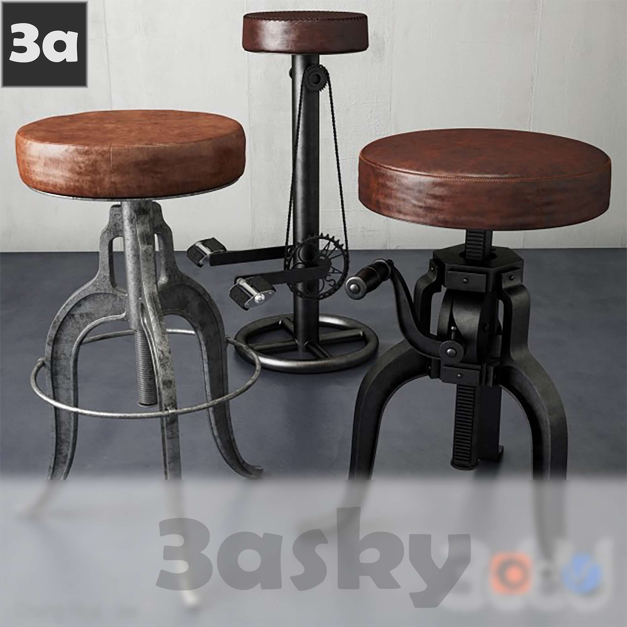 This 3D model showcases a loft bar stool designed in 3DS MAX. The intricate details and dimensions of the furniture piece are highlighted in the preview image. Explore the design and structure of this stylish bar stool for your interior design projects.