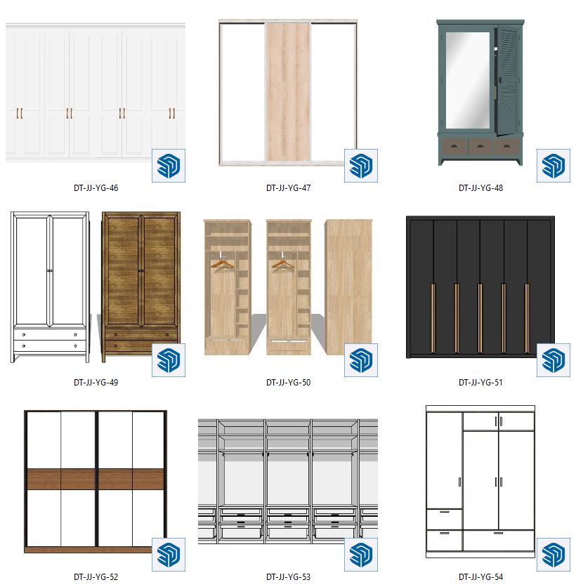 This Sketchup furniture file features a modern wardrobe design with sleek lines and ample storage space. The 3D model is ideal for interior designers and architects looking to enhance their projects with stylish furniture pieces.