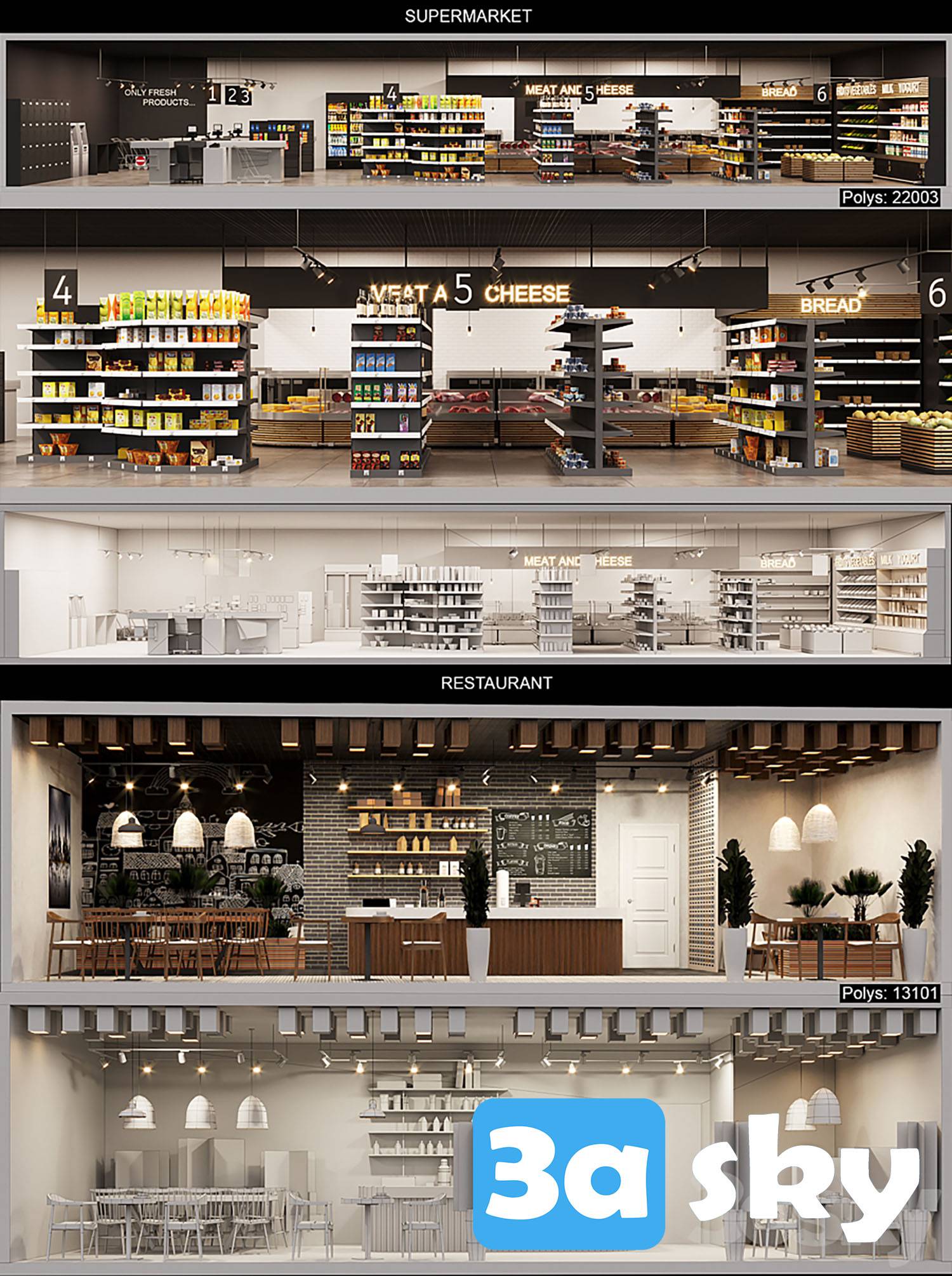 This 3D scene showcases a facade with lowpoly interiors, perfect for architectural visualization projects. The file is designed in 3DS MAX and offers a high level of detail for realistic renderings. Download this file to enhance your architectural design workflow.