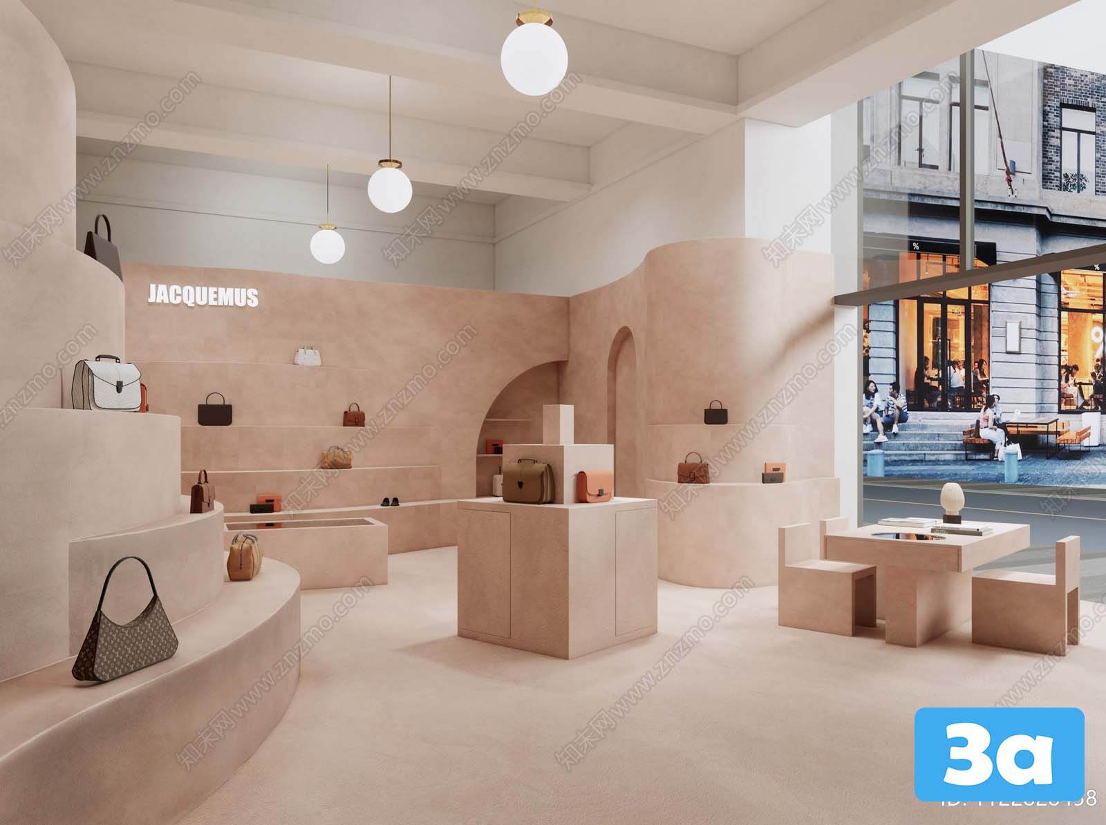 This 3D scene features a fashion shop with a modern and stylish interior design. The layout is carefully planned to showcase the latest trends in fashion retail. The decor is chic and contemporary, creating a welcoming and trendy atmosphere for customers. Explore this scene for inspiration in designing your own fashion retail space.