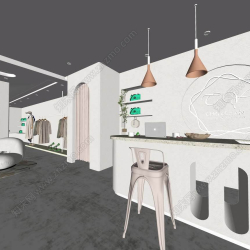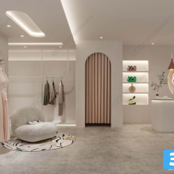 This 3D scene features a fashion shop with a modern and stylish interior design. The layout and decor of the space are carefully crafted to create a visually appealing environment. Explore the virtual space to get inspired for your own interior design projects.