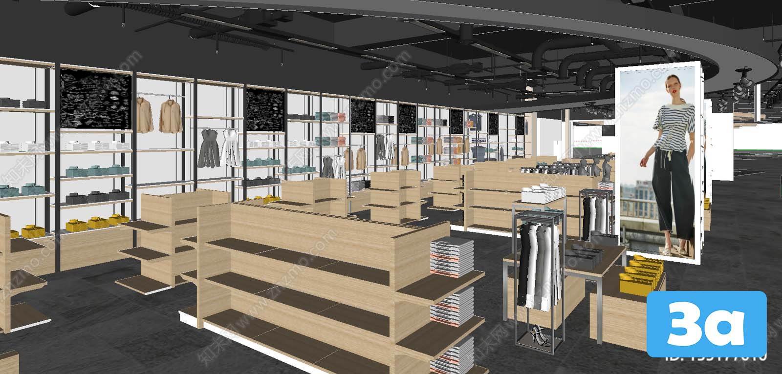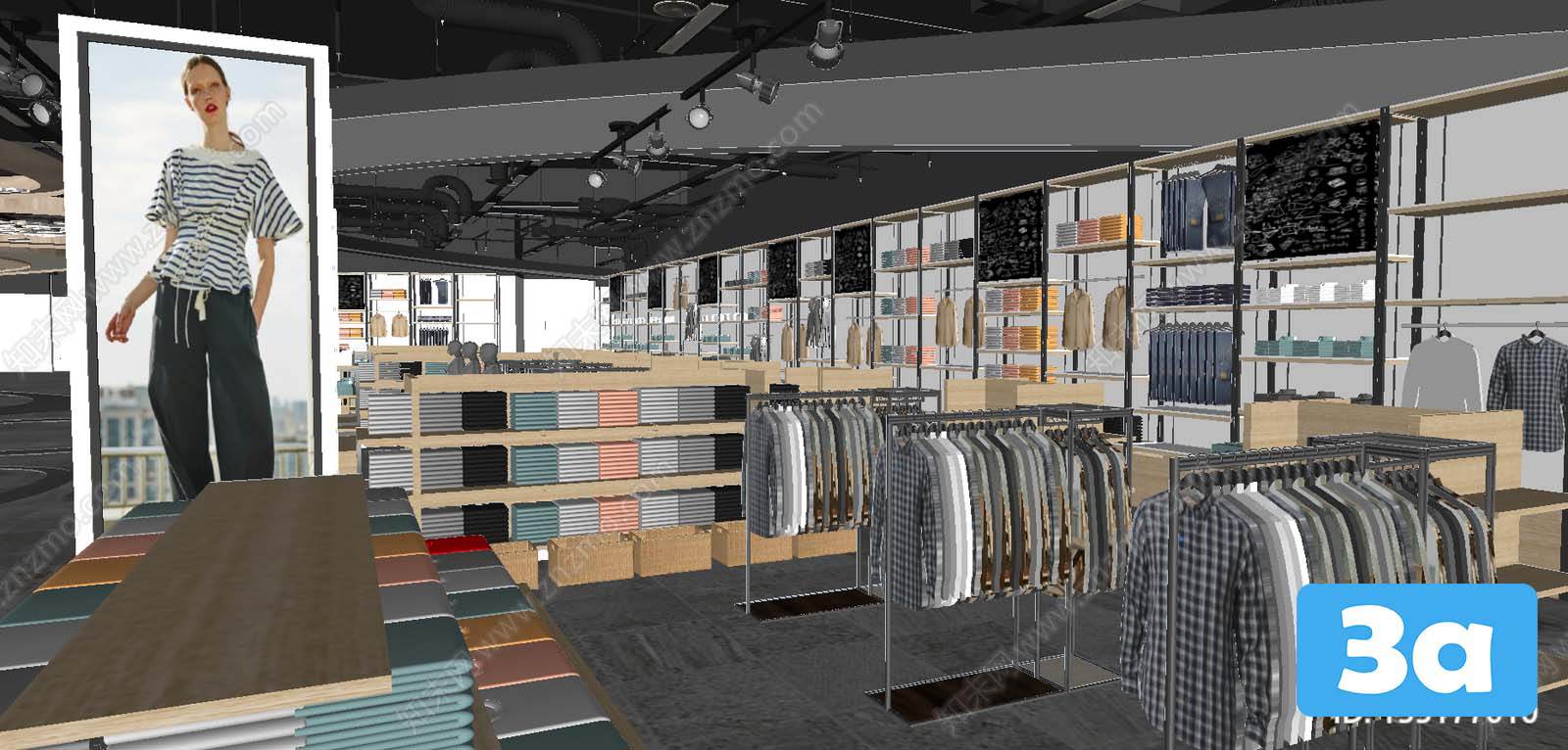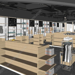 This 3D scene features a fashion shop with a modern and stylish interior design. The layout and decor of the space are carefully crafted to create a visually appealing environment. Explore the virtual space to get inspired for your own interior design projects.