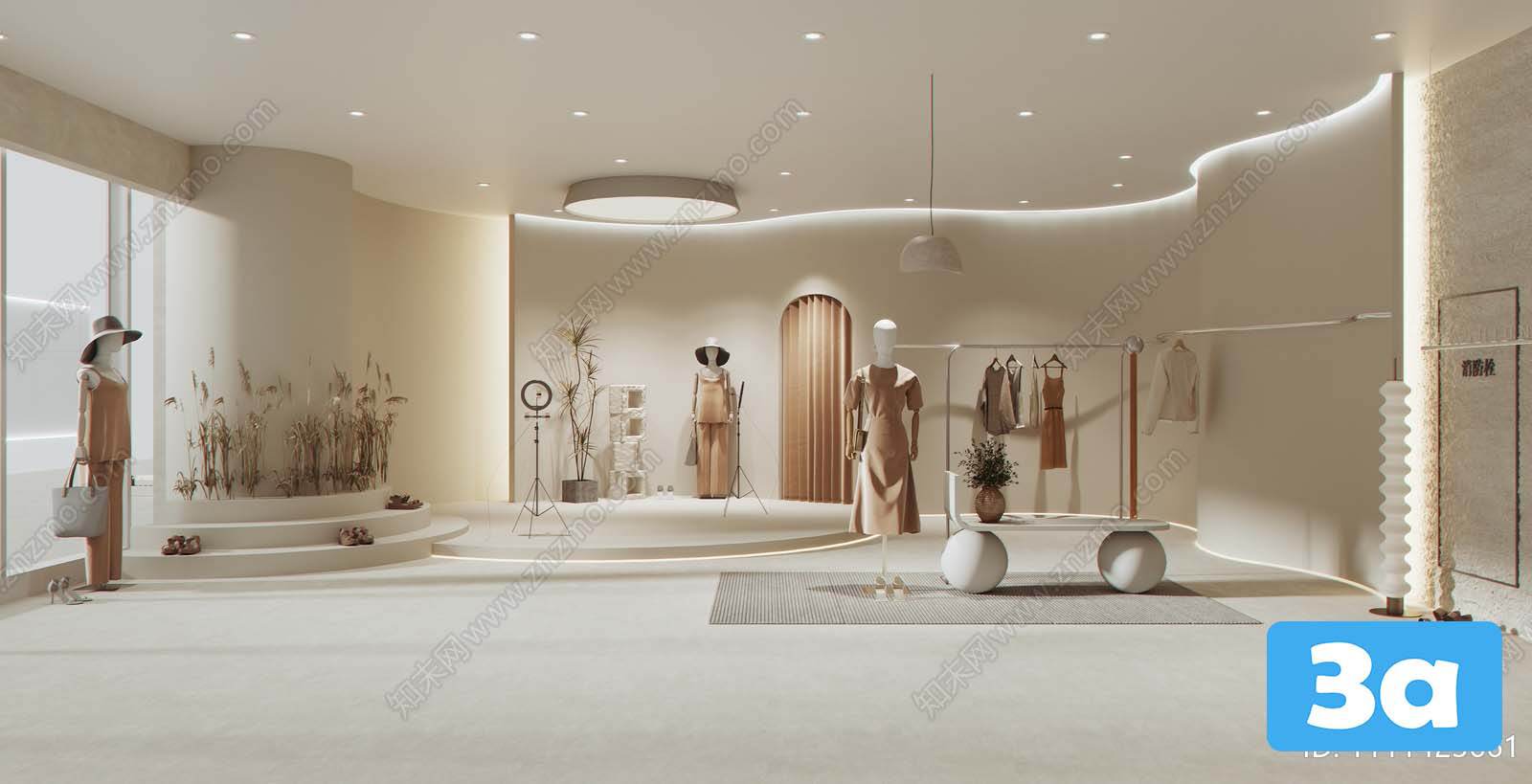 This 3D scene features a fashion shop with a modern and stylish interior design. The layout and decor are carefully crafted to create an inviting and trendy atmosphere. Explore the virtual space to get inspiration for your own design projects.