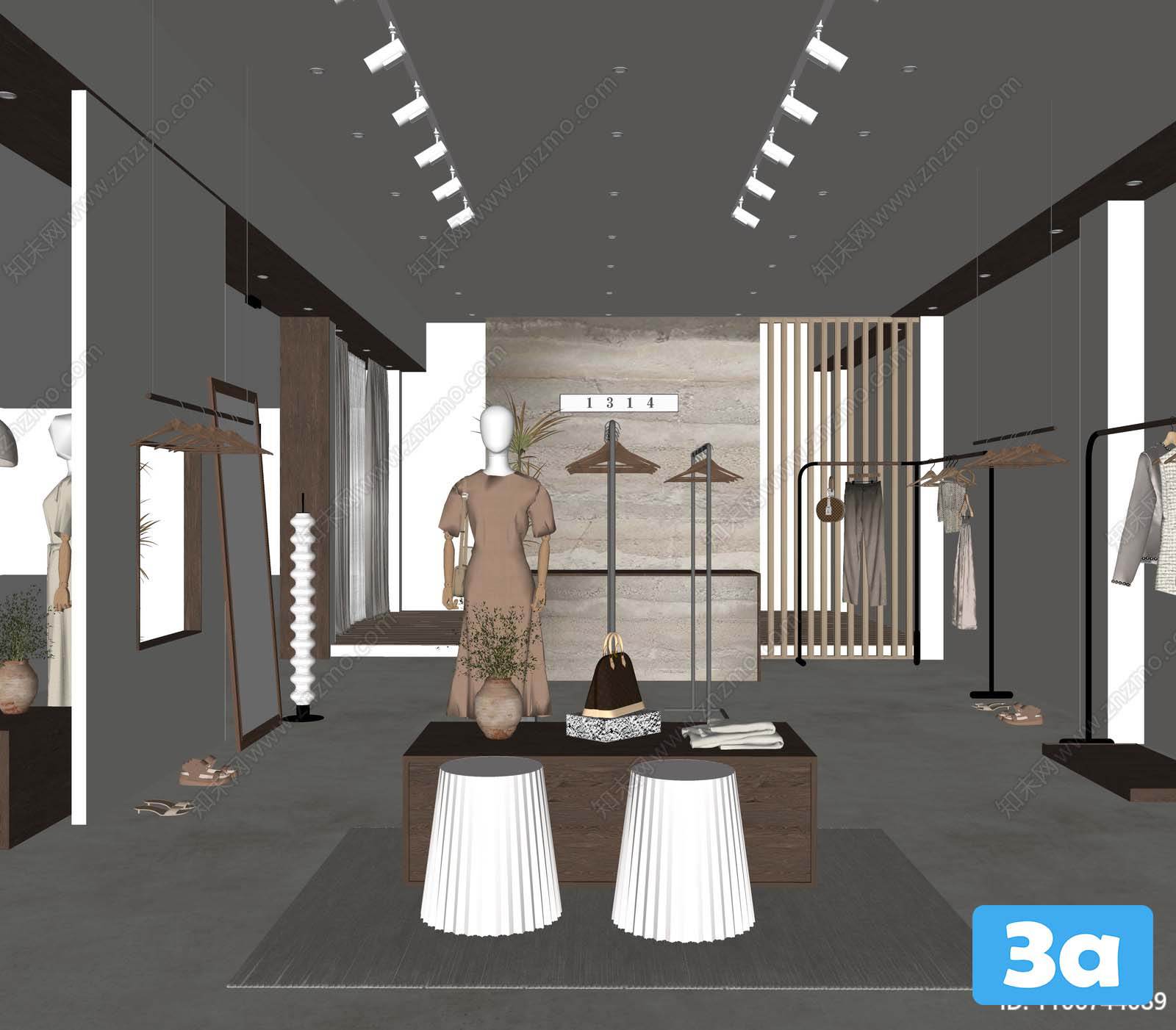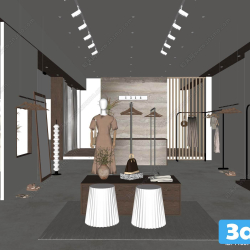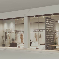 This 3D scene features a modern and stylish fashion shops interior design. The layout is carefully crafted to showcase a contemporary and trendy atmosphere. Explore the decor elements and get inspired for your own interior design projects.