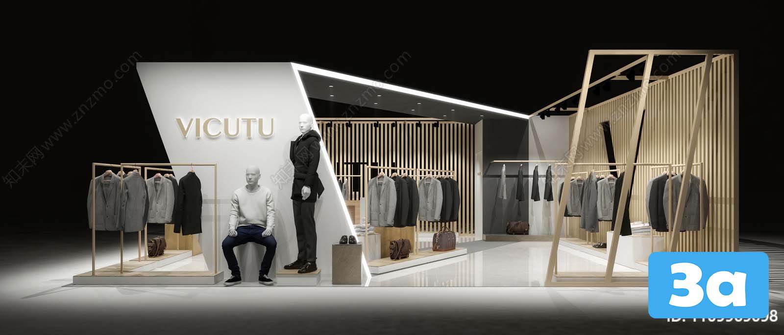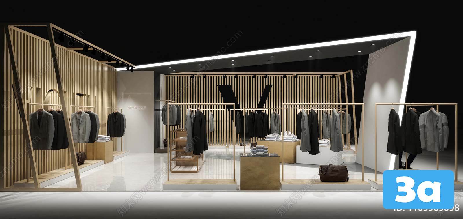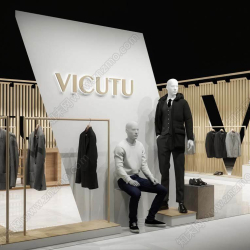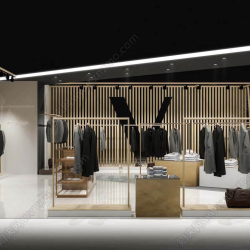 This 3D scene features a modern and stylish fashion shops interior design. The virtual space is creatively designed to showcase a contemporary layout and decor, perfect for inspiration in interior design projects.