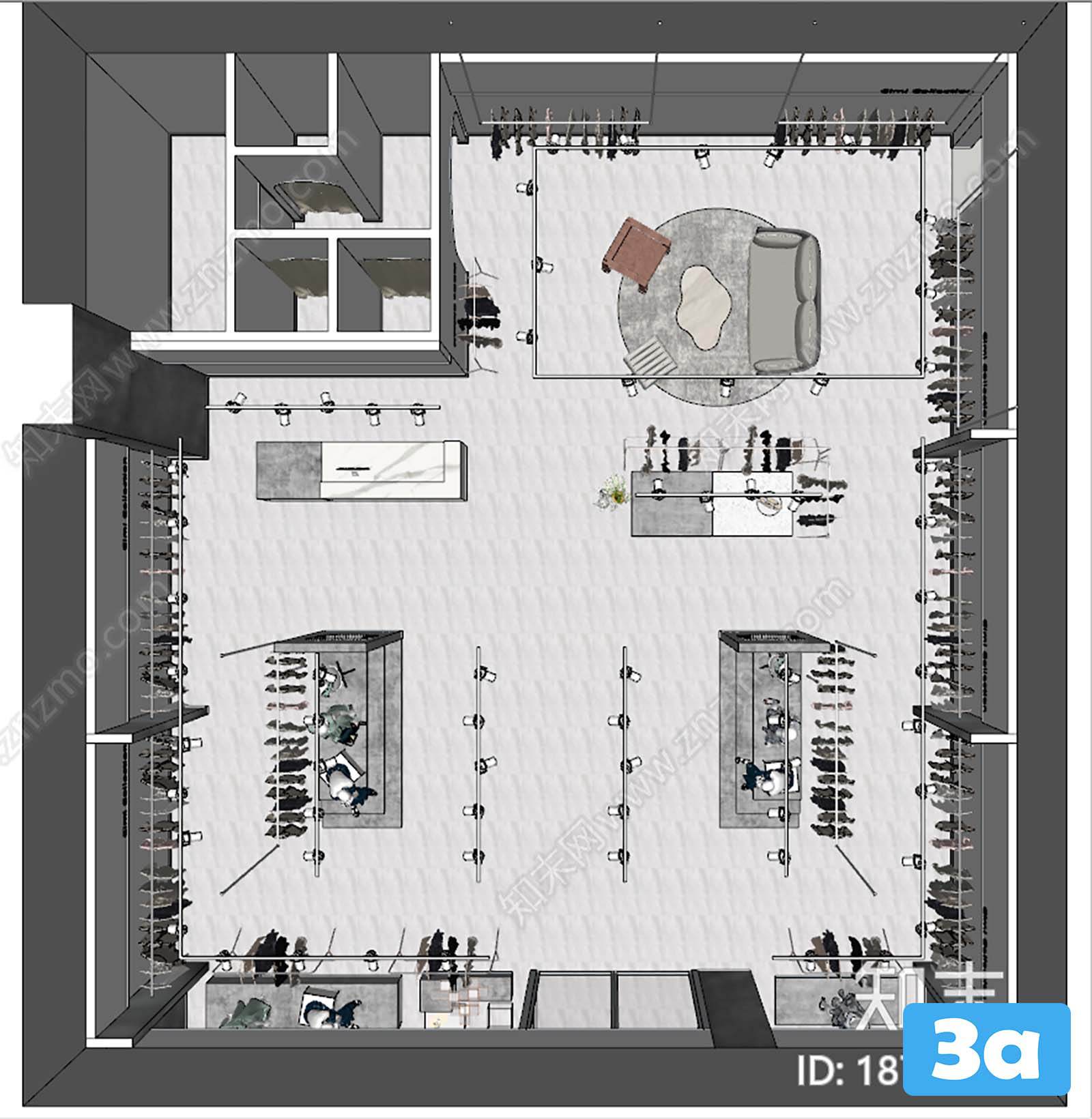 This 3D scene features a stylish fashion shops interior design with modern elements. The layout and decor are carefully crafted to create a trendy and inviting space. Explore the details and get inspired for your own interior design projects.