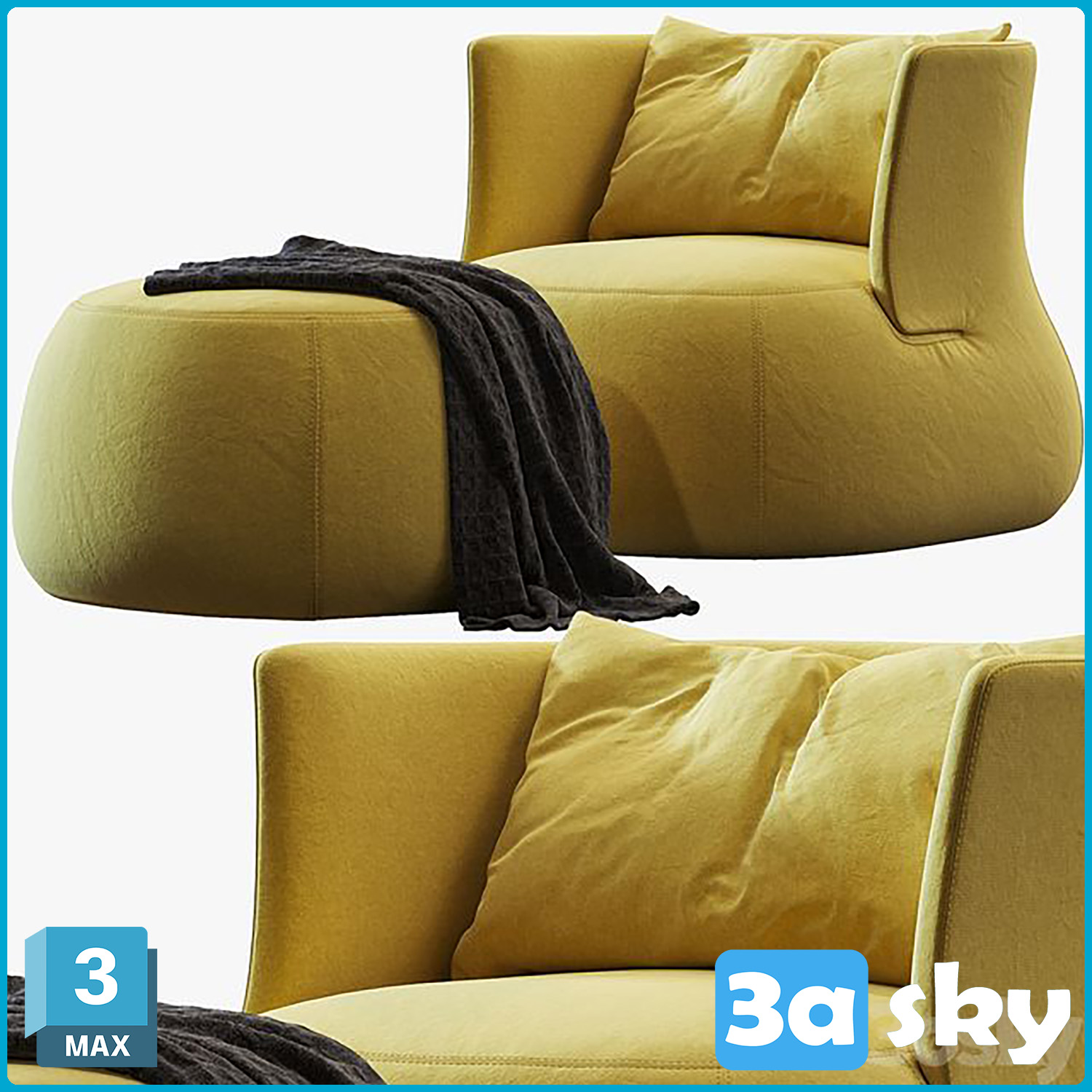 This 3D model features the Fat Sofa Armchair designed by BB. It is a high-quality furniture piece suitable for interior design projects. The model is available in 3DS MAX format and is ideal for architectural visualization and rendering purposes.