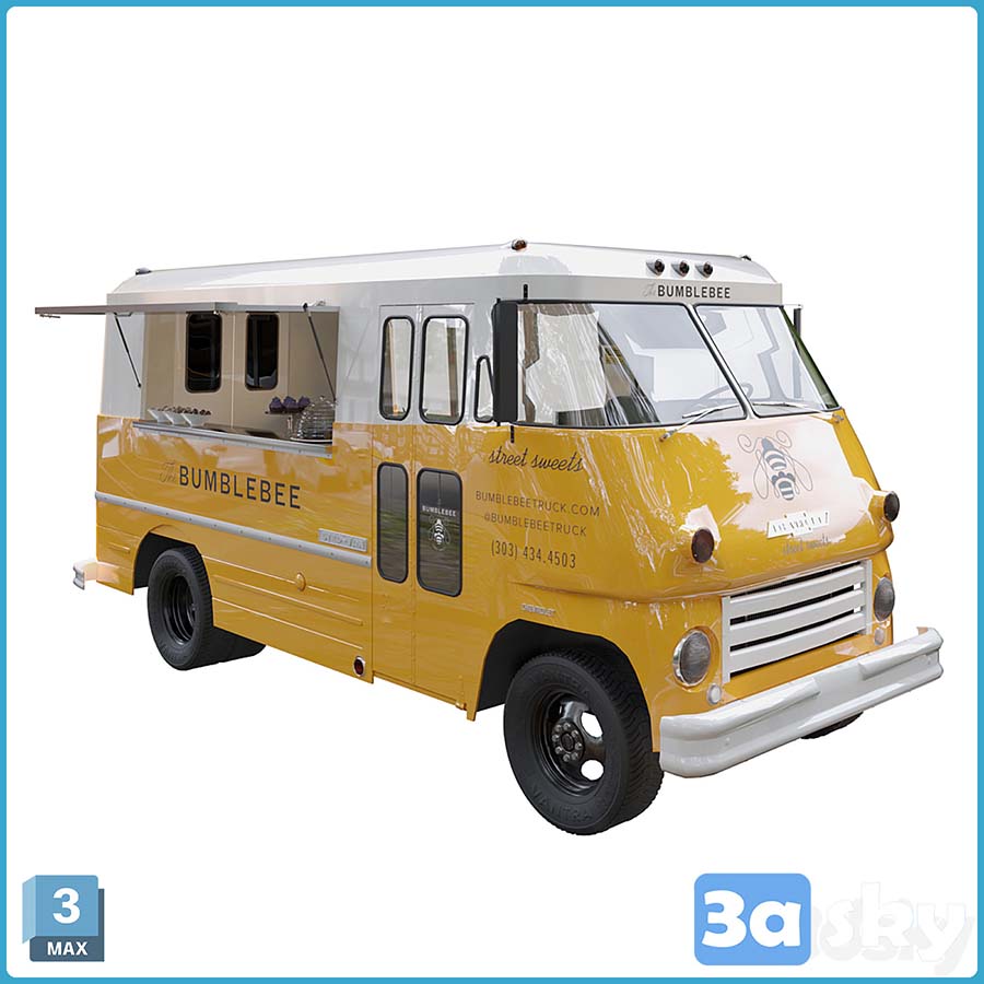 This 3D model showcases a beautifully designed Chevrolet food truck, ideal for decoration purposes. The model is created in 3DS MAX, providing intricate details and realistic features. Perfect for adding a touch of creativity to your projects or visualizations.
