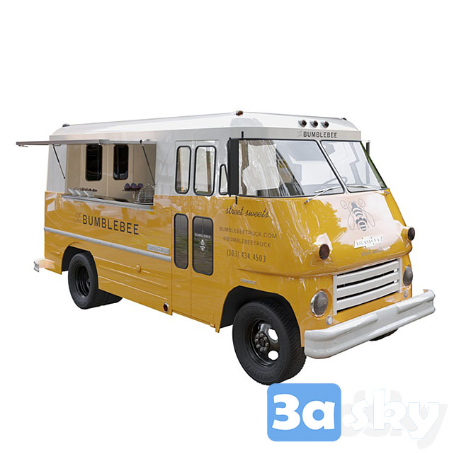 This 3D model showcases a Chevrolet food truck, ideal for interior design and decoration purposes. The file is in 3DS MAX/DECORATION format, providing a high-quality representation of the vehicle. Perfect for use in various design projects.