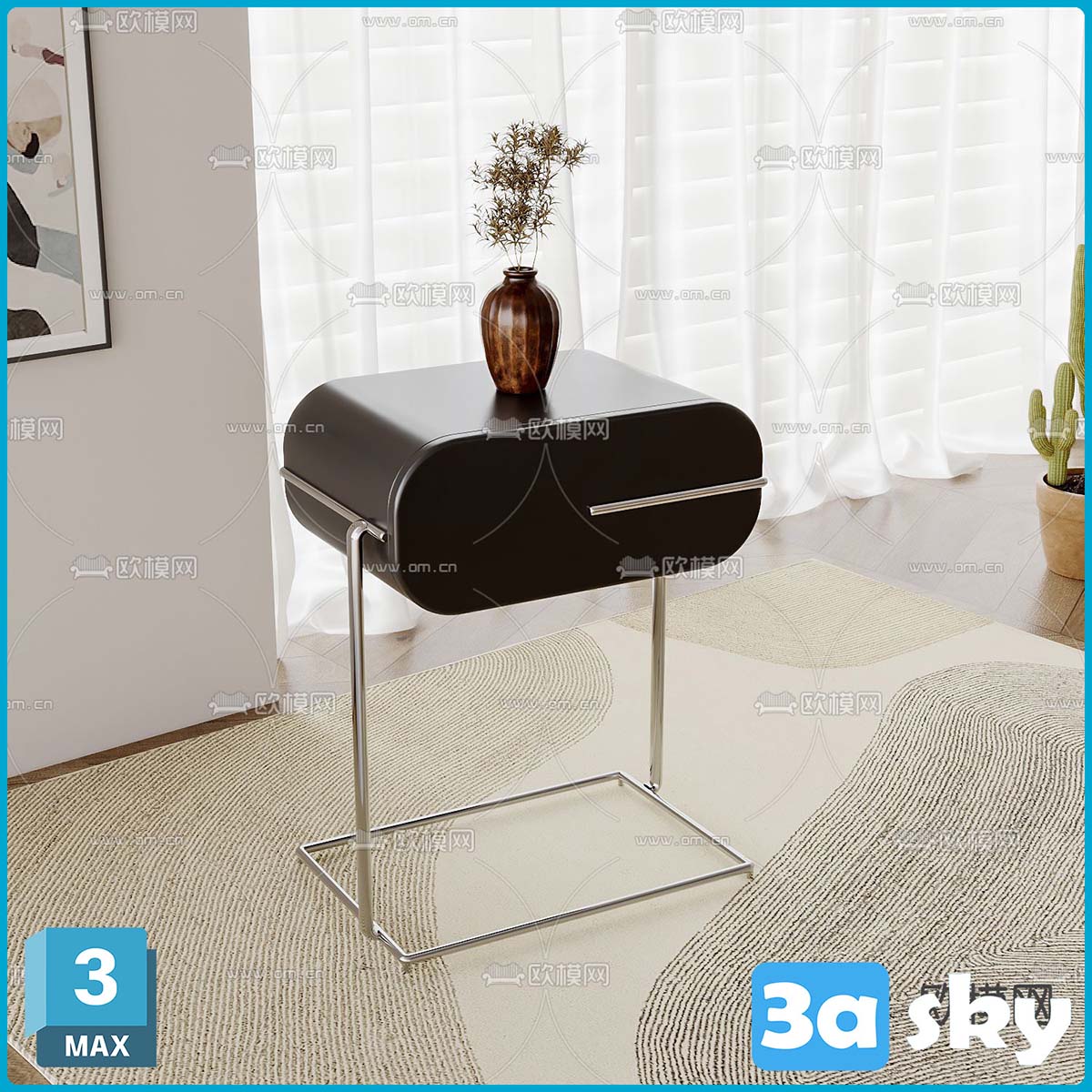 This image showcases a 3D model of furniture created in 3DS MAX. It provides a preview of the design and structure, ideal for interior design and home decor projects. The high-quality rendering highlights the modern and stylish aspects of the furniture piece.