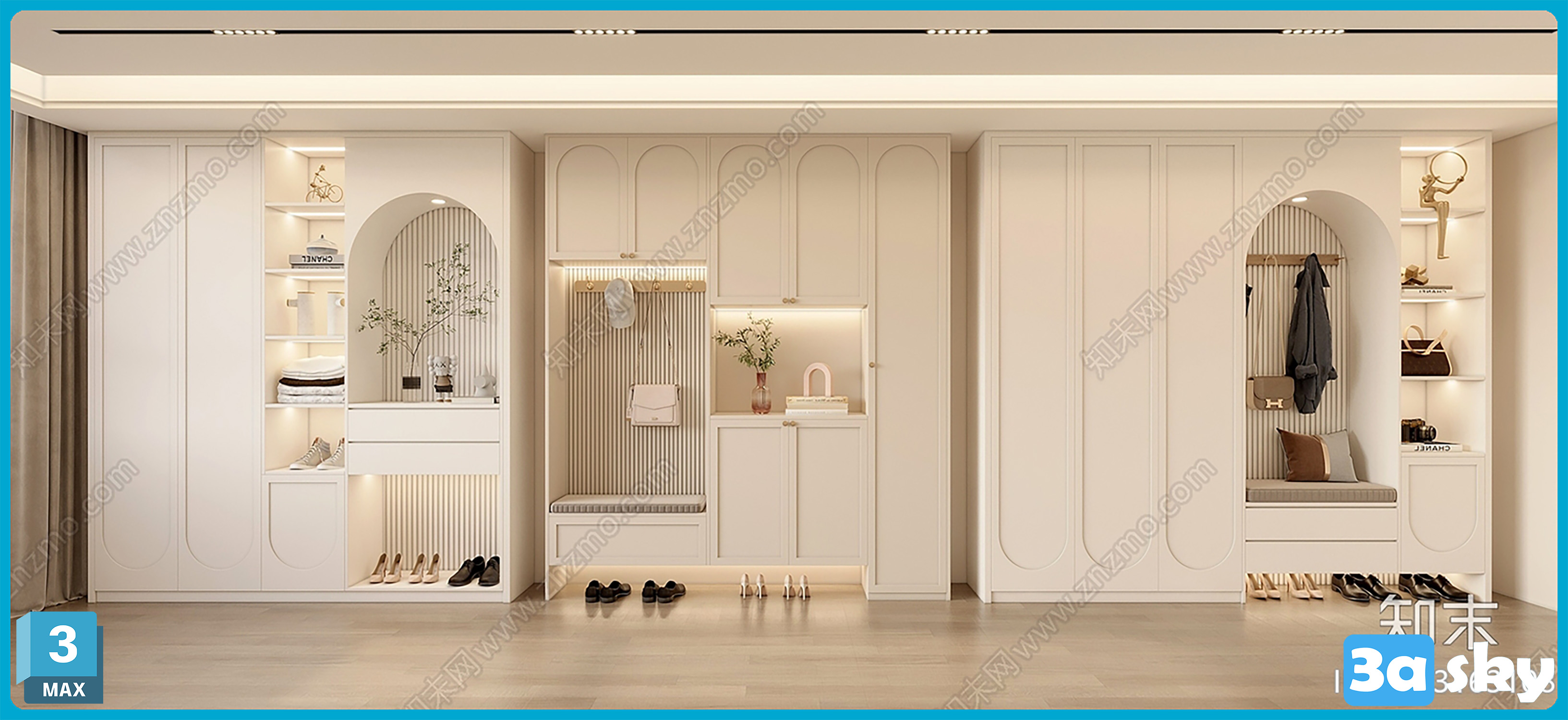 This image showcases a 3D model of furniture created in 3DS MAX. It provides a preview of the design and structure, ideal for interior design and home decor projects. The high-quality rendering highlights the modern aesthetic of the furniture piece.