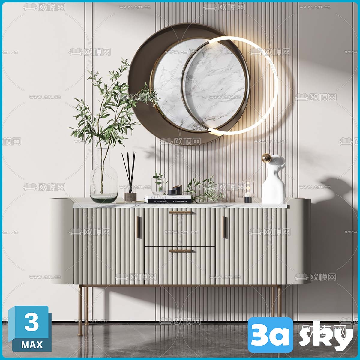 This image showcases a preview of a furniture 3D model created in 3DS MAX. The design features intricate details and a modern aesthetic. Explore the structure and design elements of this furniture piece.