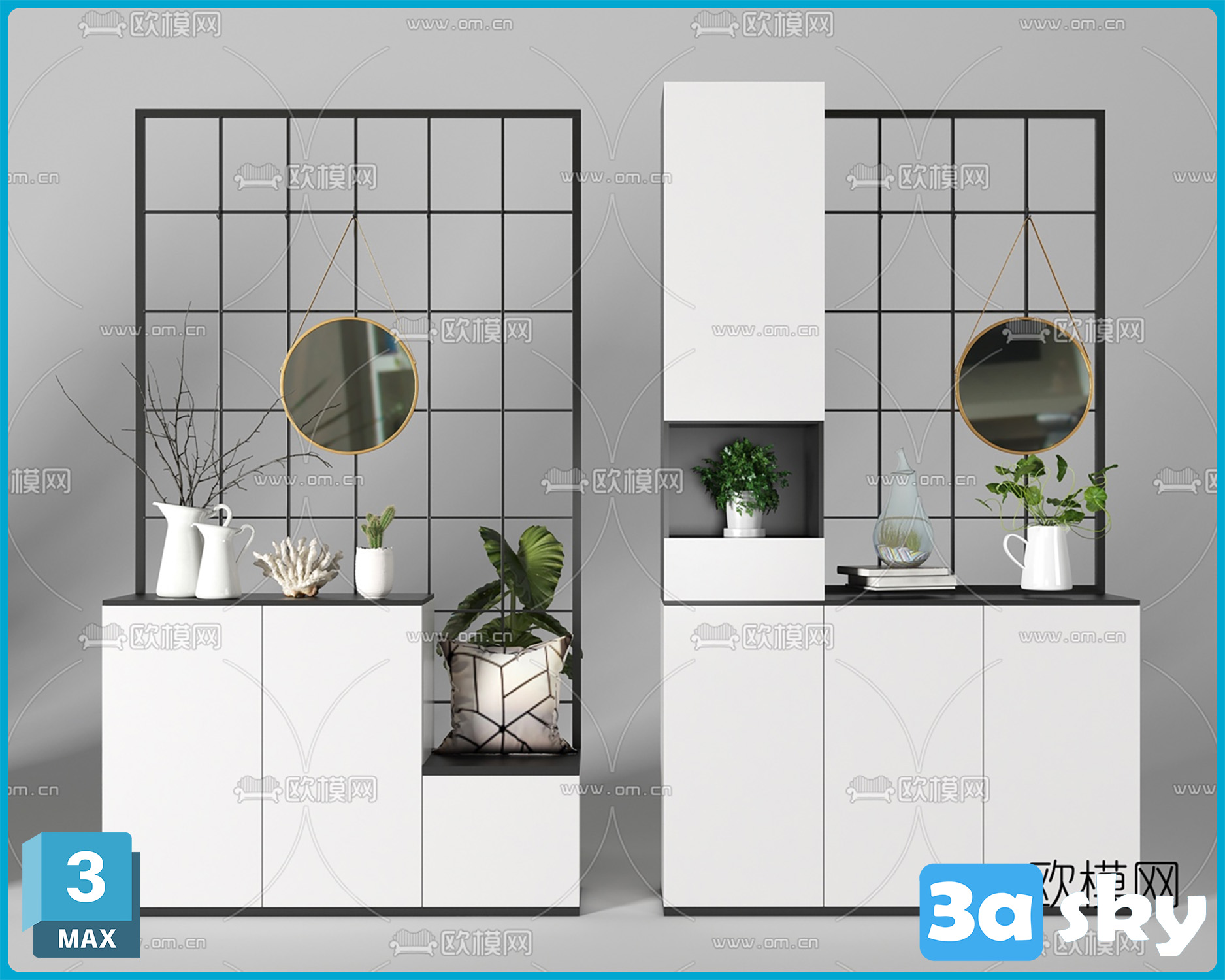 This image showcases a 3D model of furniture created in 3DS MAX. It provides a preview of the design and structure, ideal for interior design and home decor projects. The high-quality rendering highlights the modern aesthetic of the furniture piece.