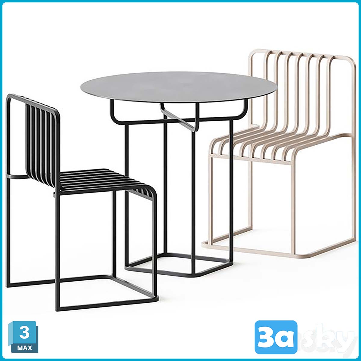 This 3D model showcases a modern table and chair grill design by Diabla. The intricate details and sleek lines make it a perfect addition to any interior design project. The model is created in 3DS MAX format and is ideal for architectural visualization and interior design purposes.