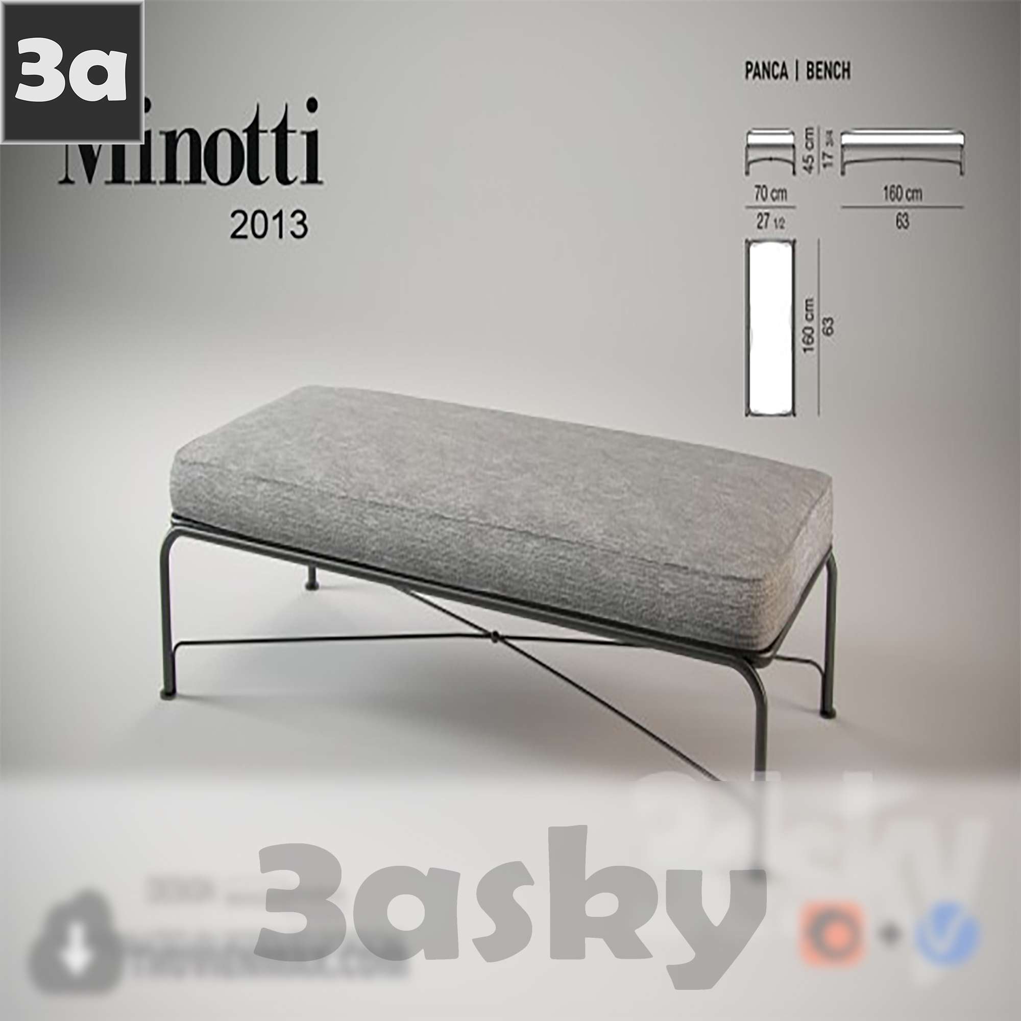 This 3D model showcases a modern and stylish bench designed by Minotti. It is a high-quality furniture piece suitable for interior design projects. The design features sleek lines and a contemporary aesthetic, making it a versatile addition to various design styles. Enhance your design projects with this elegant and functional furniture piece.