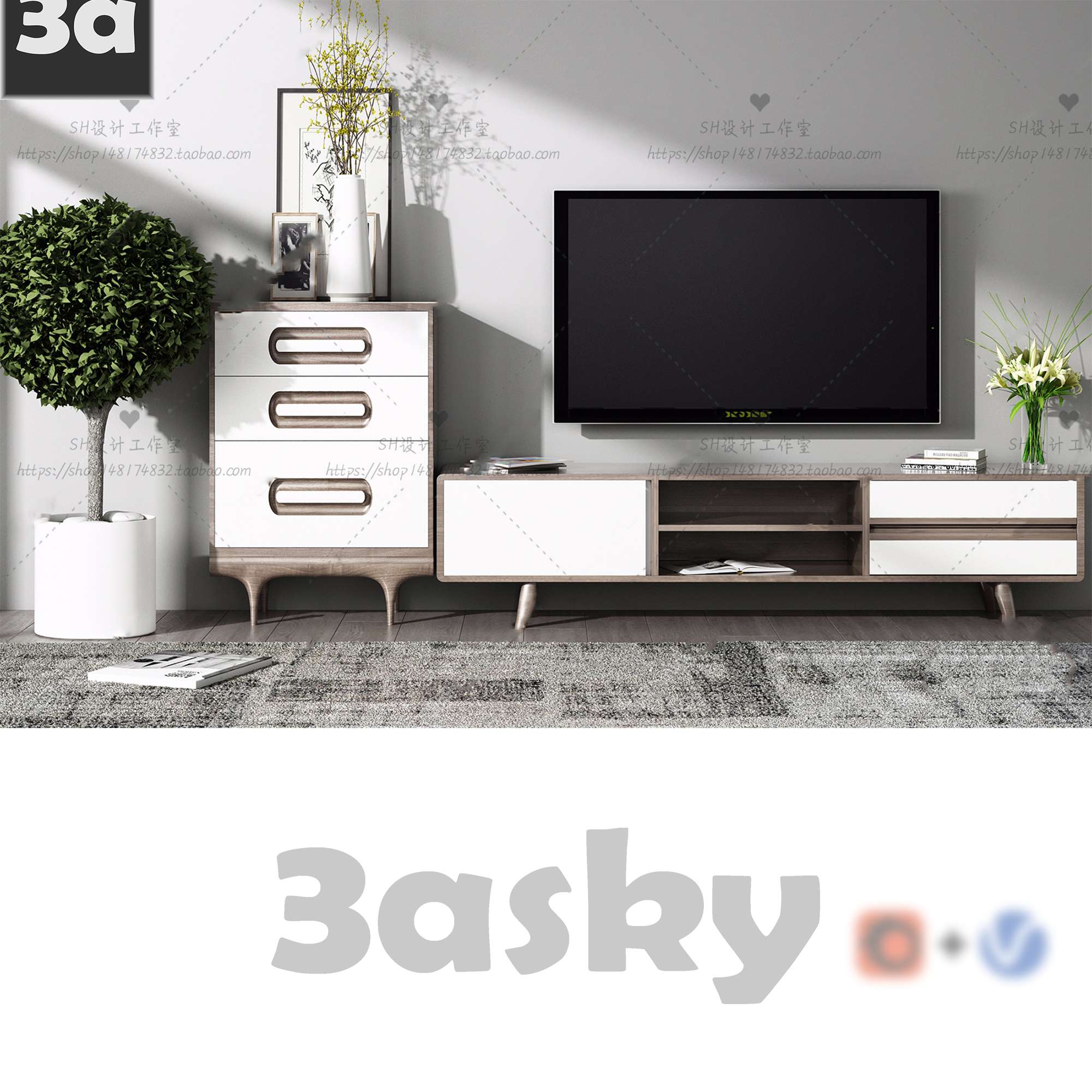 This 3D model showcases a modern and stylish furniture cabinet design labeled as A003. Created using 3DS MAX software, this furniture piece is perfect for interior design projects, adding a touch of elegance and functionality to any space. The intricate details and high-quality rendering make it a versatile asset for designers and architects looking to enhance their visualizations.
