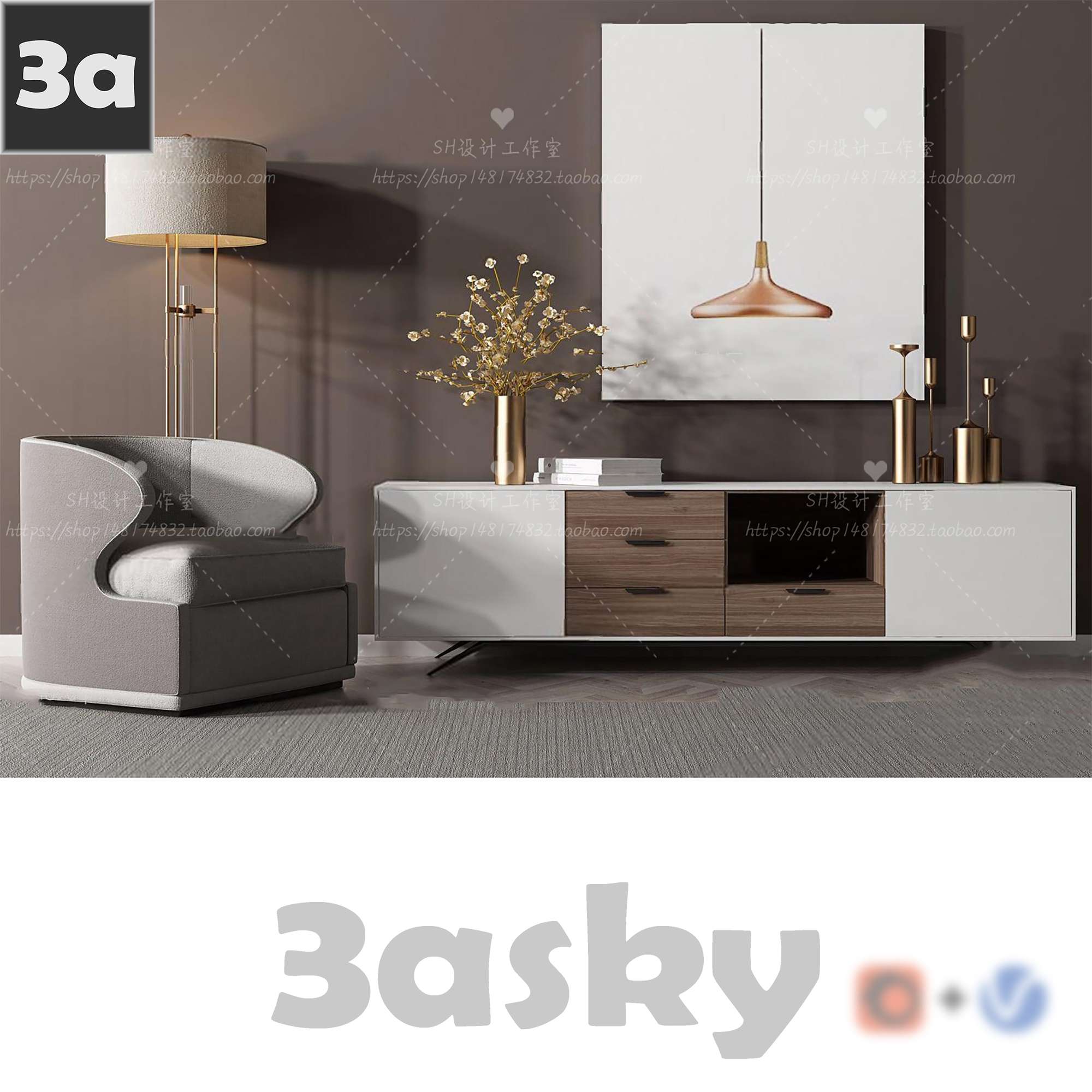This 3D model features a detailed furniture cabinet design labeled as B008. It is created in 3DS MAX software, suitable for interior design and architectural visualization projects. The file provides a realistic representation of a modern cabinet piece, perfect for enhancing your design concepts.