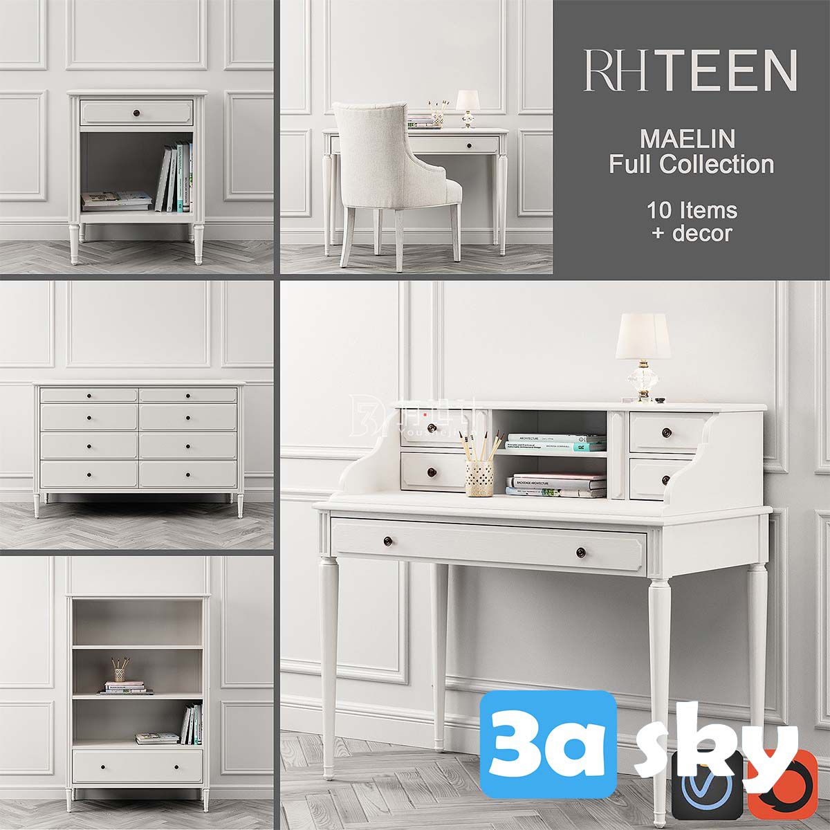 This file showcases the Maelin Collection of furniture in 3DS MAX format. It includes a variety of high-quality 3D models suitable for interior design projects. Explore the intricate details and design elements of each piece in this collection.