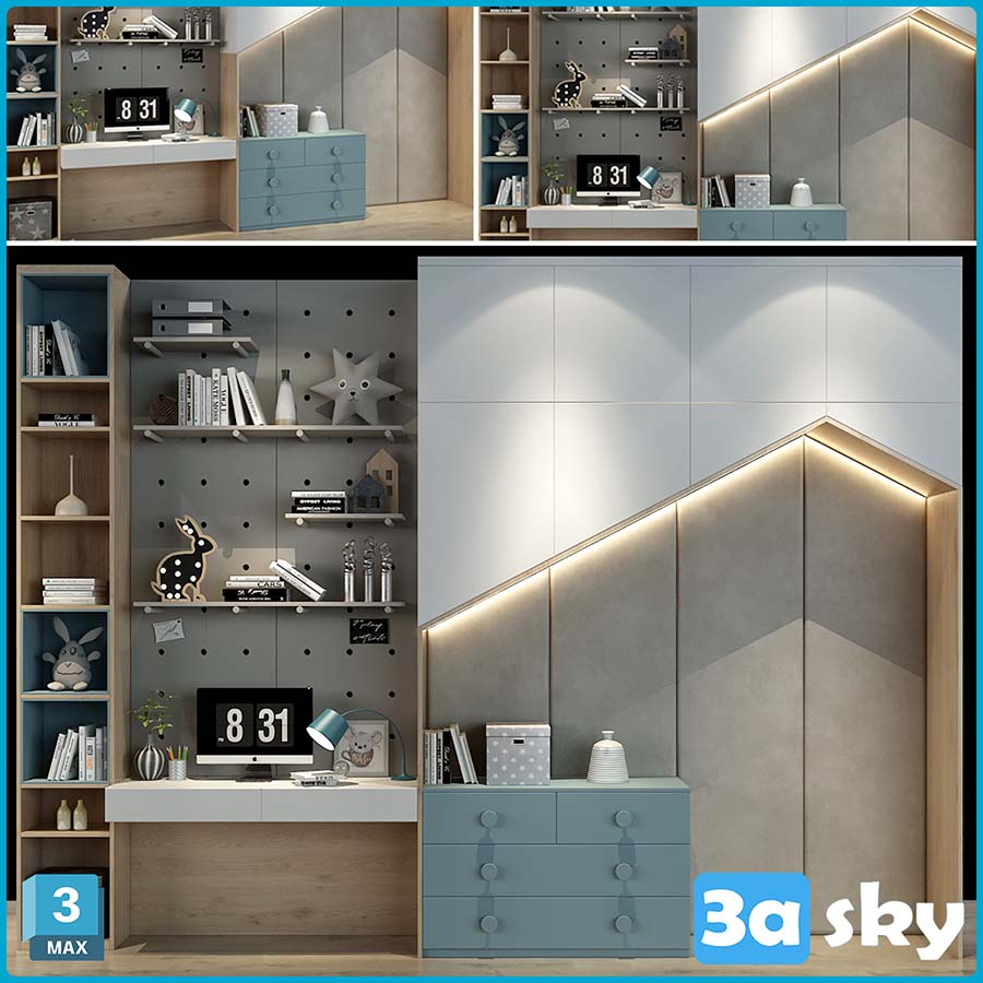 This 3D model showcases furniture specifically designed for children. It is a high-quality and detailed representation suitable for interior design projects and visualizations. The model is created in 3DS MAX/KIDS format.