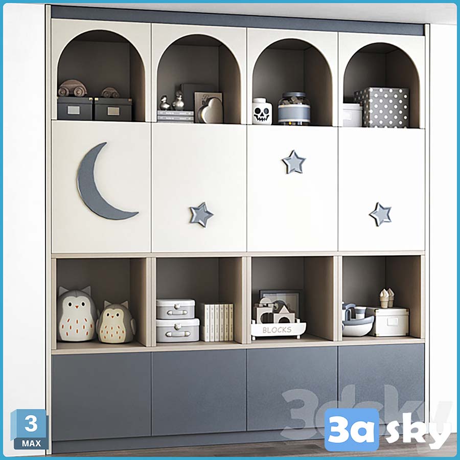 This 3D model showcases a set of nursery furniture perfect for kids' rooms. The collection includes a crib, changing table, and other essential pieces. Ideal for interior designers, architects, and parents looking to visualize and plan a nursery room layout.