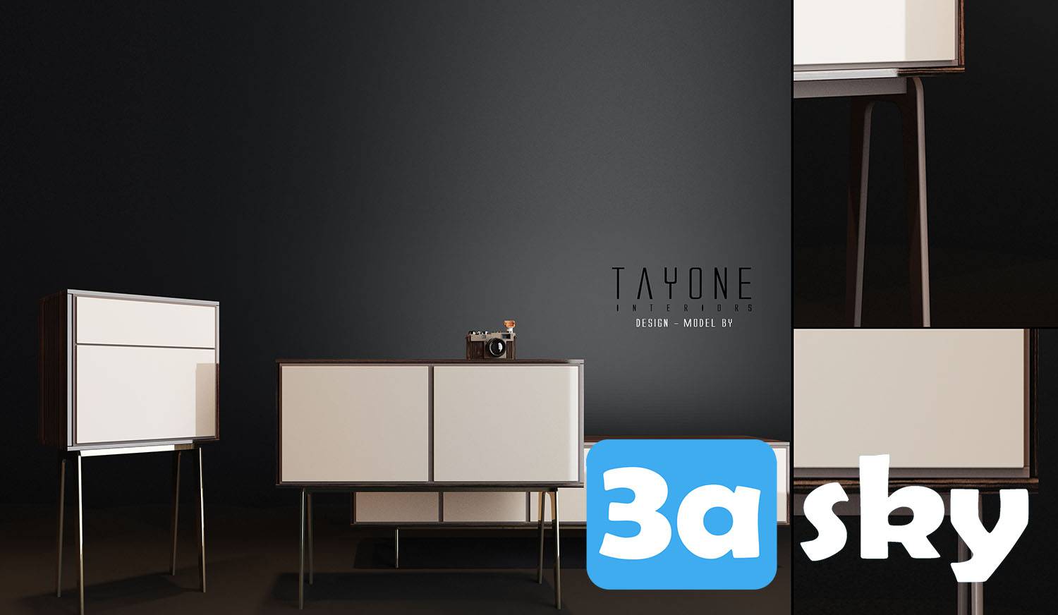 This 3D model showcases a furniture set named Tayone, designed and rendered in 3DS MAX. The set includes various pieces of furniture suitable for interior design projects. Enhance your design workflow with this high-quality furniture collection.