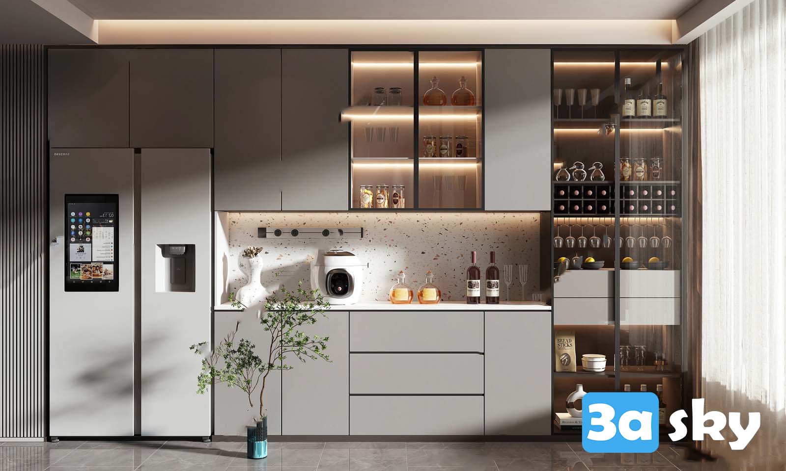 This 3D model showcases a modern wardrobe design created in 3DS MAX. It is suitable for interior design projects and visualization. The model is high-quality and detailed, perfect for adding realism to your scenes.