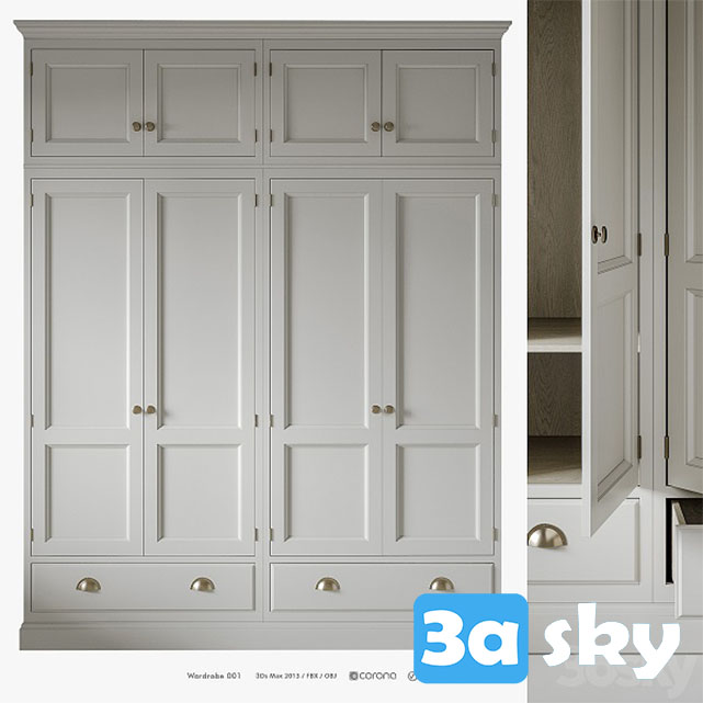 This 3D model showcases a wardrobe design created using 3DS MAX software. The image provides a preview of the wardrobe's structure and design details, perfect for interior design enthusiasts and 3D modeling enthusiasts alike.