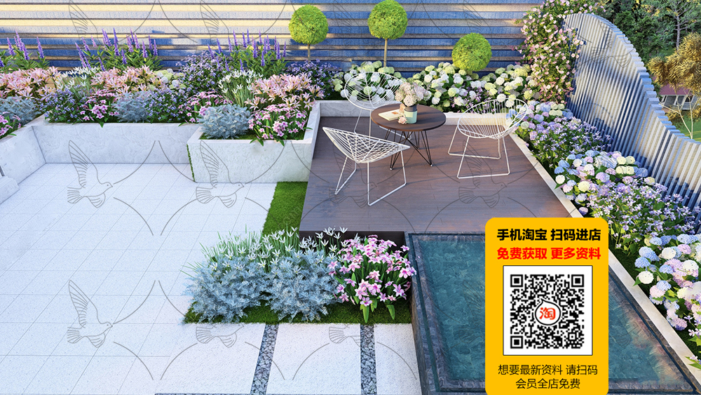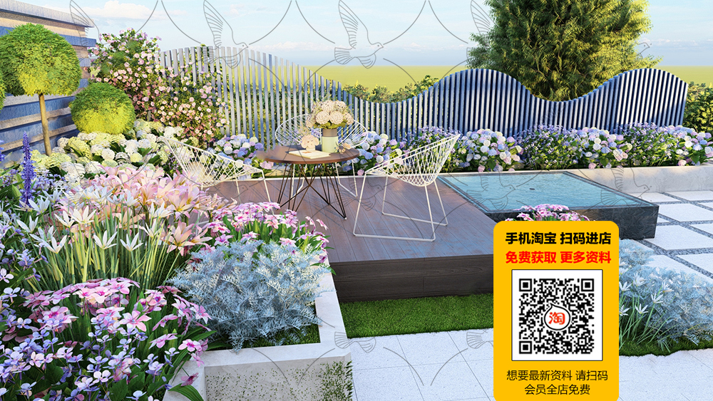 This 3D scene features a beautifully designed garden with intricate landscaping elements. The scene captures the essence of a serene outdoor space, perfect for inspiration and design ideas. Explore the detailed elements and design features in this captivating garden setting.