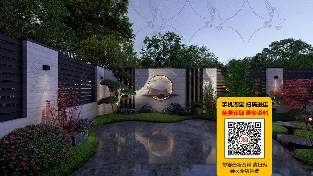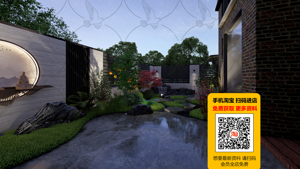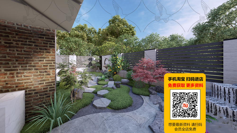 This 3D scene features a meticulously crafted garden with a variety of plants, trees, and architectural elements. The design showcases a harmonious blend of nature and human creativity, creating a serene and inviting outdoor space. Explore the intricate details and get inspired for your own landscaping projects.