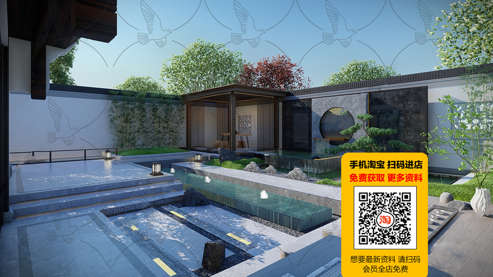 This 3D scene features a beautifully designed garden with intricate landscaping and outdoor elements. The scene captures the essence of a serene outdoor space, perfect for inspiration in landscape design projects. The detailed elements in the scene showcase the beauty of nature and architectural design combined harmoniously.
